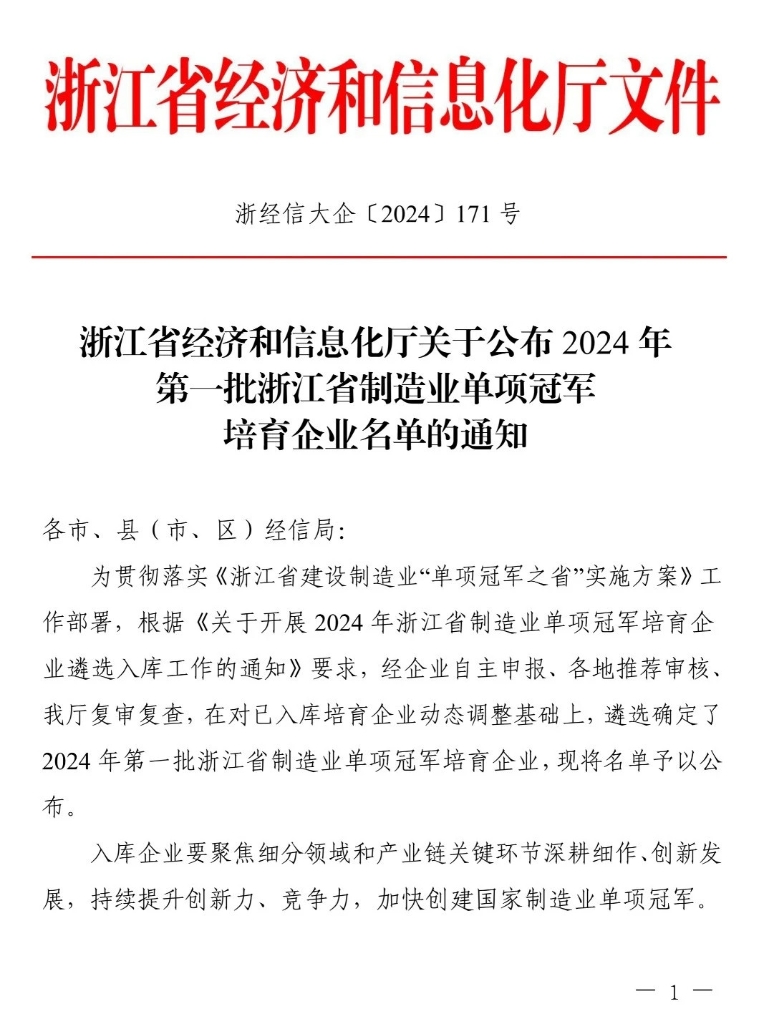 日前,,,,,,,,浙江省经济和信息化厅宣布了2024年第一批浙江省制造业单项冠军培育企业名单,,,,,,,,凭证《关于开展2024年浙江省制造业单项冠军培育企业遴选入库事情的通知》要求,,,,,,,,经企业自主申报、各地推荐审核、省厅复审复查,,,,,,,,JDB电子荣登榜单。。。。。。
